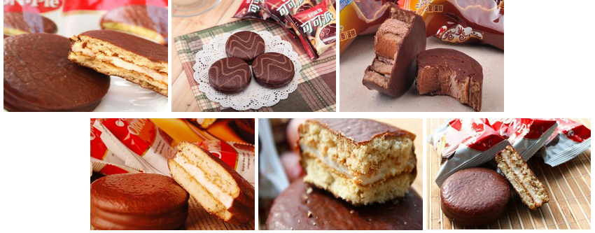 用雞蛋和面粉為主要原料,調(diào)成稠漿狀,經(jīng)過注料、焙烤、冷卻、翻餅、夾心等工序,制成噴香美味的蛋黃派、時尚派、休閑派、草莓派等系列夾心蛋糕,深受消費者青睞。